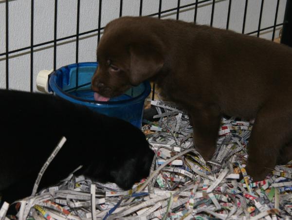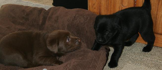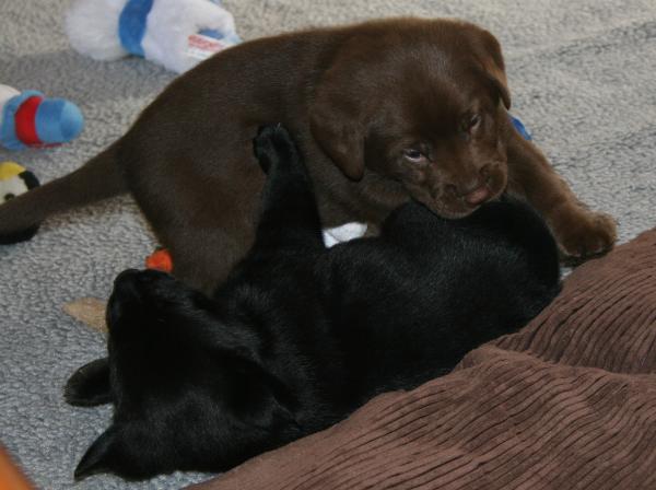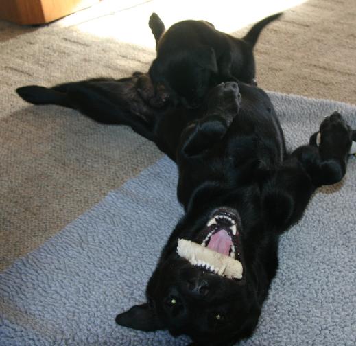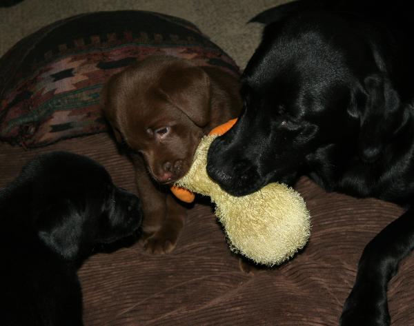 Chili having fun with her puppies