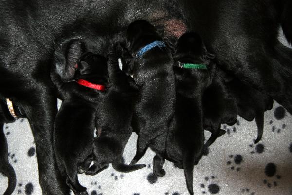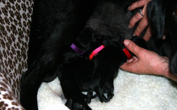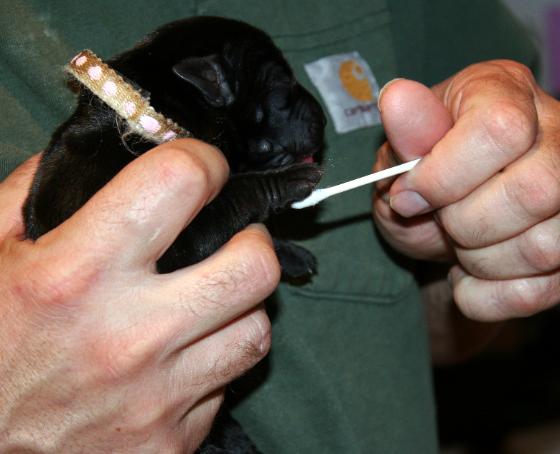 | At 3 days old began the "Early Neurological Stimulation". A bio-sensor program used to increase the pups performance later in life. Puppies going through this program were found better able as adults to cope with stressful situation, problem solve and actually physically healthier with higher cardiovascular performance, stronger immune systems, adrenal glands and heart beats. |