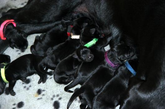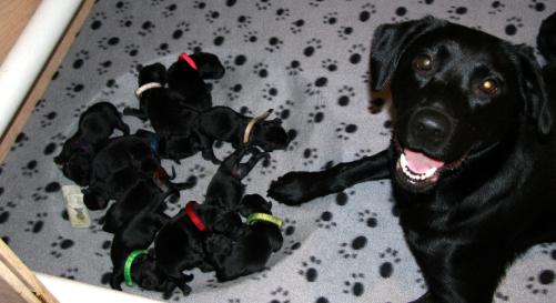 | Whelped 11 puppies (3 males). Mazy feeling pretty Mazy is doing a keeping them clean and feeding attentive to all her little ones. |