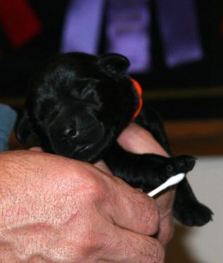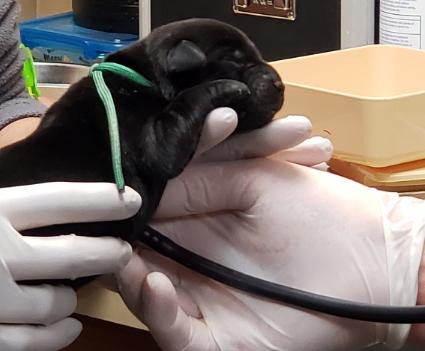 | AFTER THREE DAYS... had vet health check and dew claws removed. Vet checked for cleft pellets, normal heart beats and temps...all passed with flying colors! |