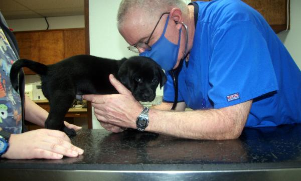 | Puppies received their wellness vet check, microchip and first vaccine. |