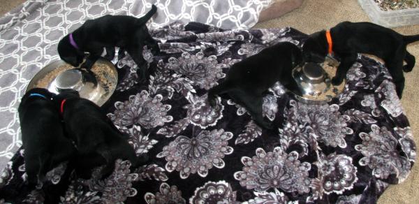 | Puppies are weaned now; eating Eukanuba large breed puppy food |
