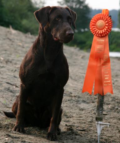 | Oakley earned her AKC SH in no time flat and has 1 MH pass. She is small (52 lbs), very muscular, well built and light on her feet. Runs straight lines, loves water and has one amazing nose. Marking Machine! |