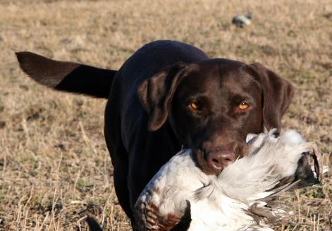 | She is an exceptional hunting dog. She covers the ground and busts into heavy cover. She comes from strong pointing lab lines on both her top and bottom sides. |